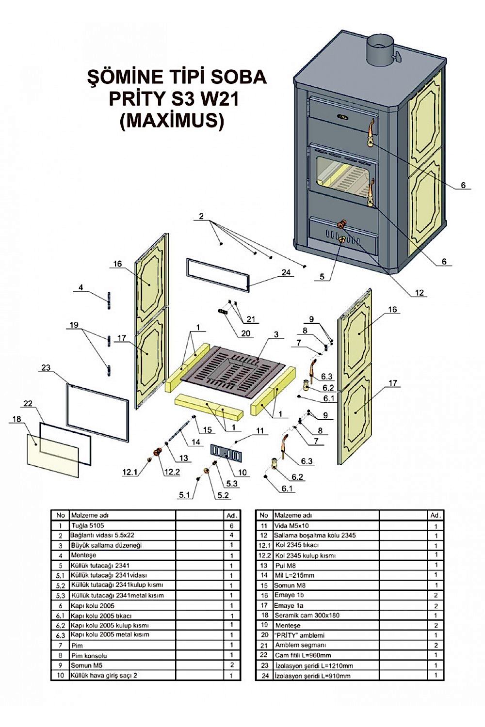 PRITY S3 W21 MAXIMUS Kalorifer Sobası
